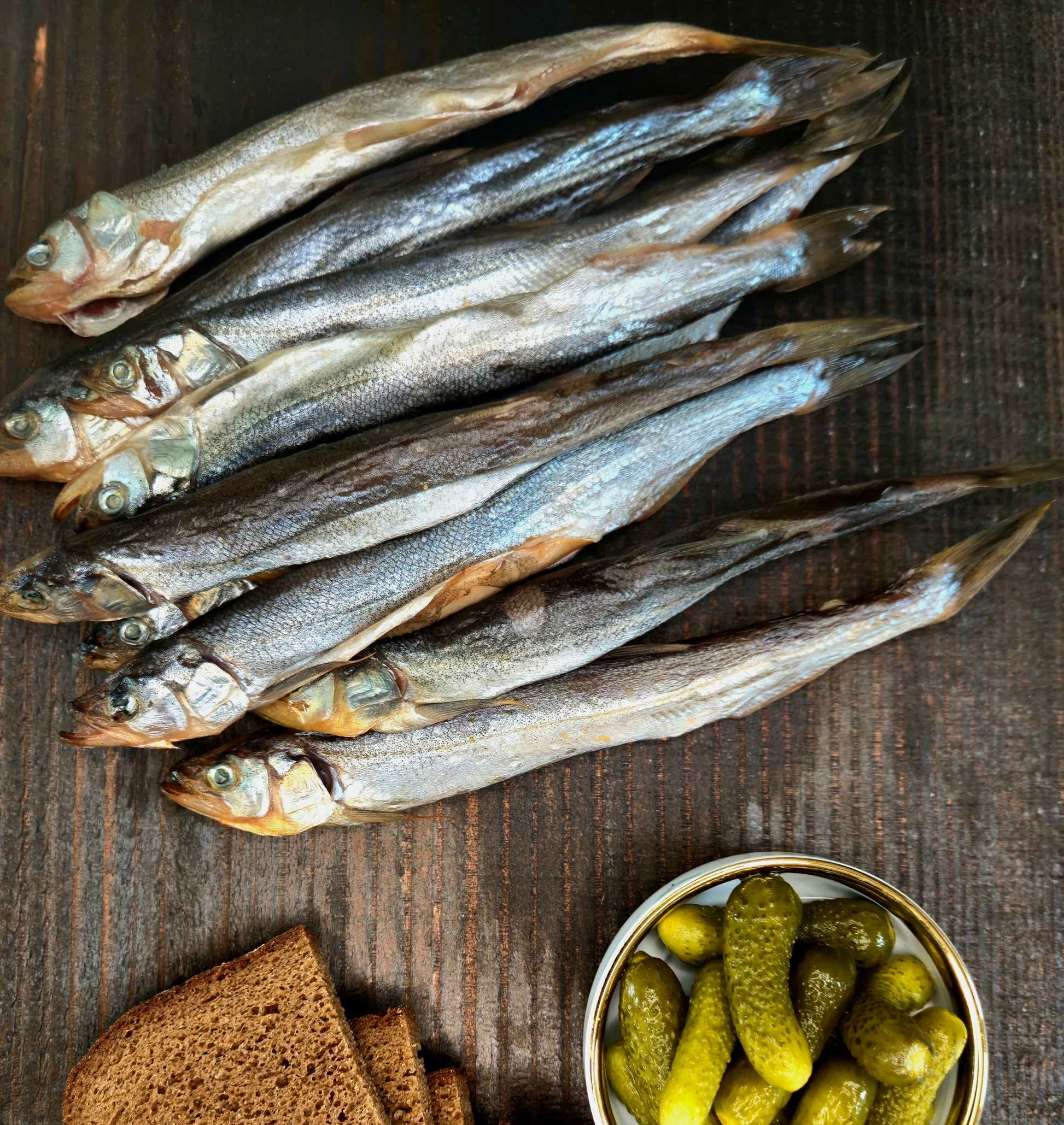 Freshly wild-caught river smelt is cleaned, brined, and cold-smoked to achieve nostalgic Slavic flavor and texture.